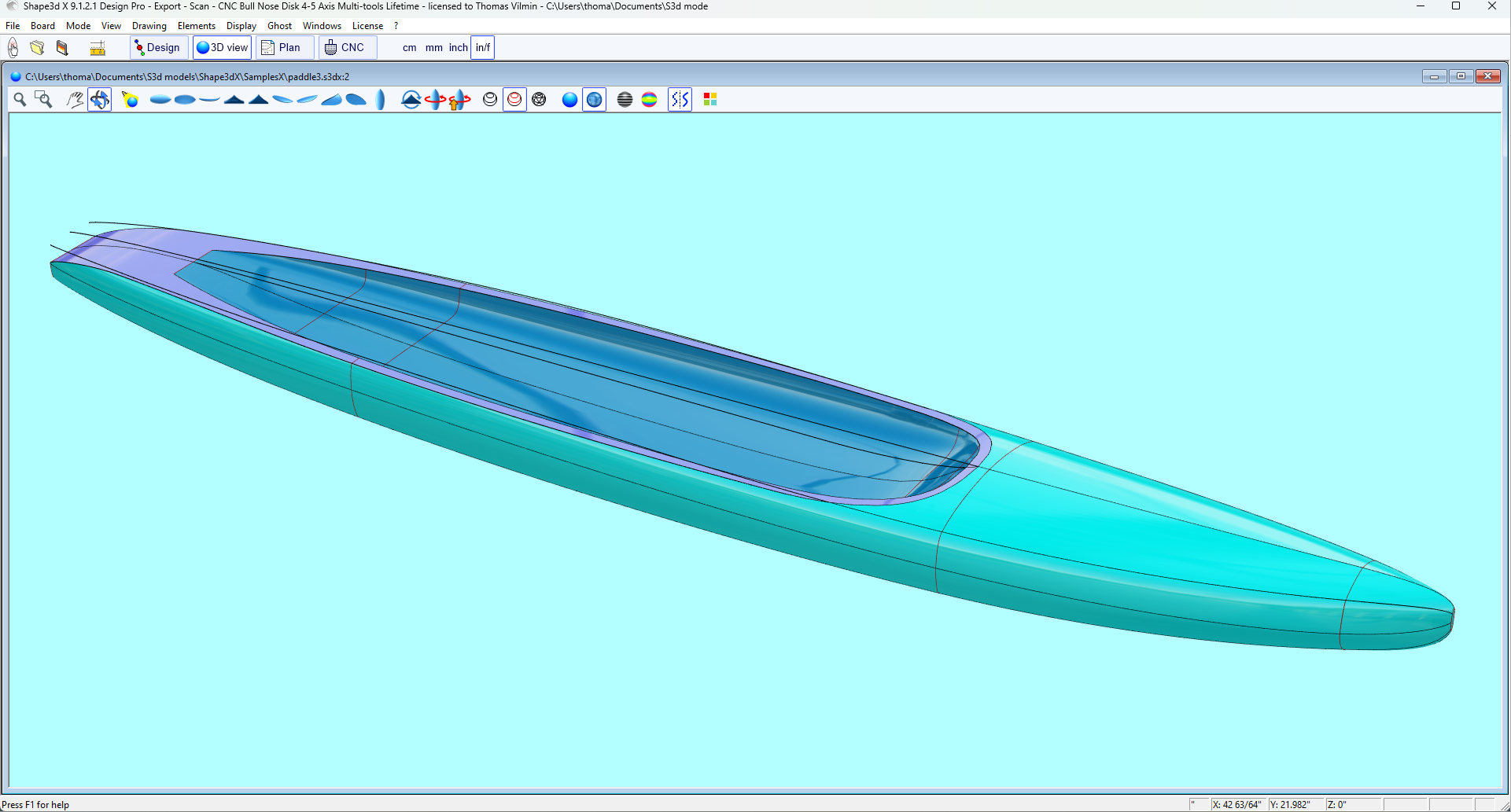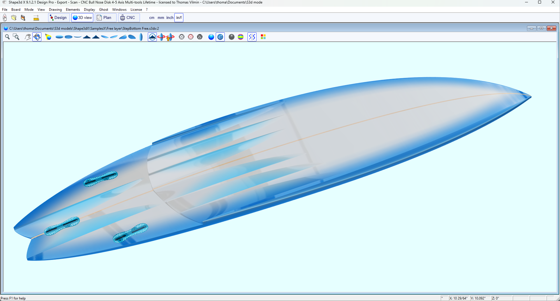 That's the version you need to design swallow tails, recessed decks, fin and hydrofoil design, or for Hollow wood constructions.