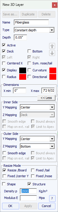 - Check the options Developped length and Developped Surf. from Deck. if the 3D layer is on the deck, or Developped Surf. from Bot if it's on the bottom.