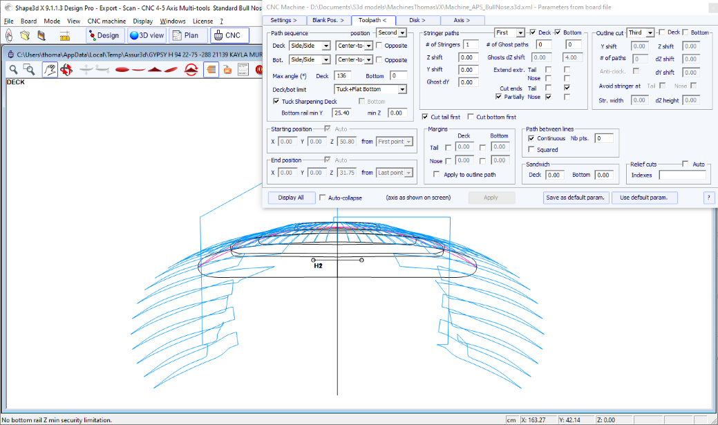 I would like to build a double stringer foilboard – is there a way to get a longitudinal stringer profile from the system – in this case 4.5cm from the centerline?