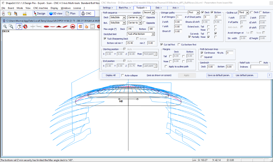 to export the developed surface of the deck of the board until the bottom rail curve, select