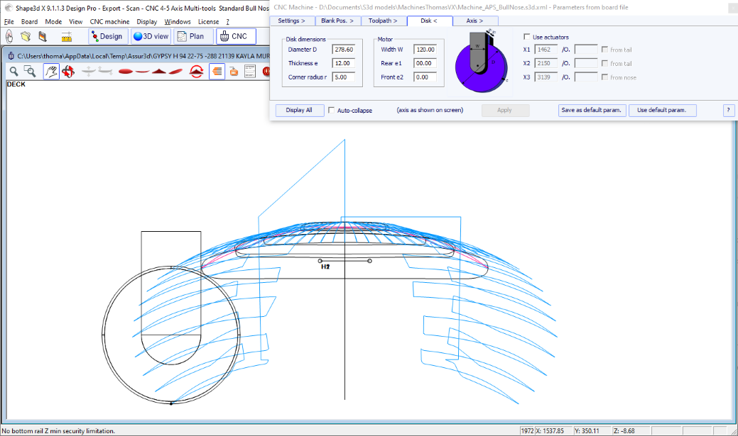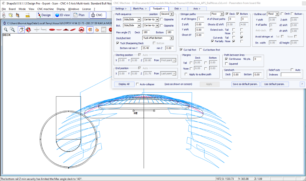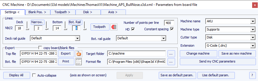 Here is the correspondance between the CNC parameters in Shape3d and Precision Shaper: