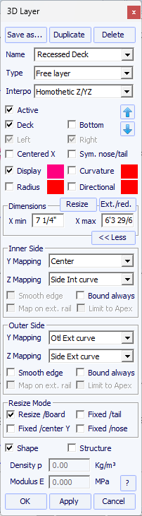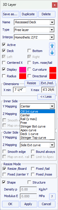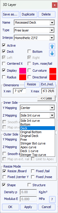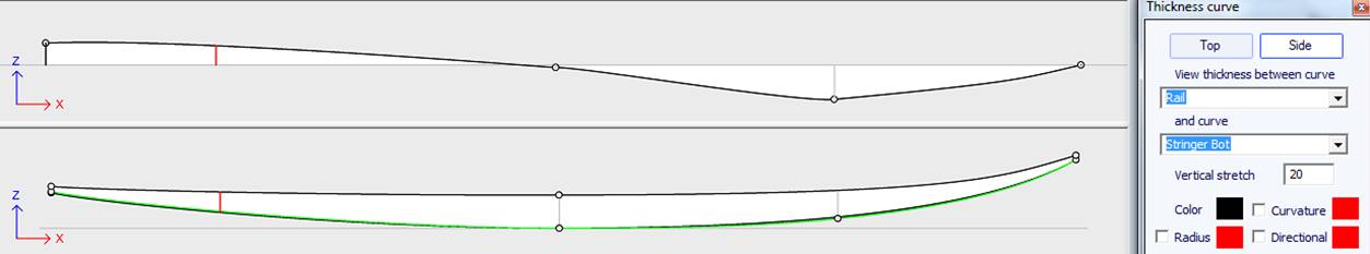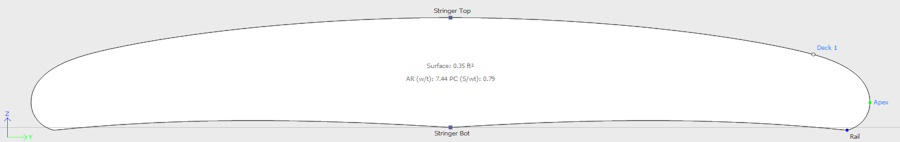 The Stringer Deck curve define the height of the center of the deck of the board.