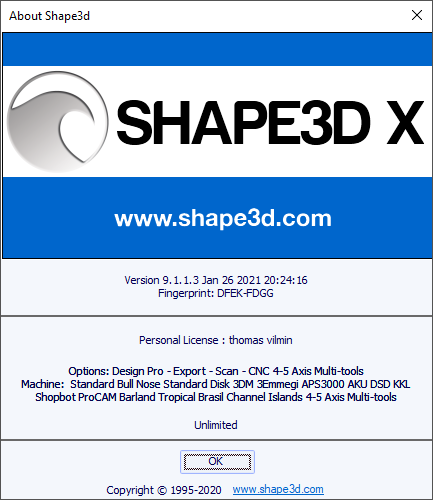 Select and copy the Fingerprint in the clipboard, and send it to contact@shape3d.com.