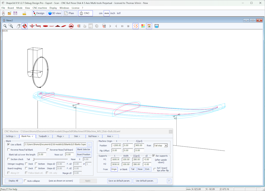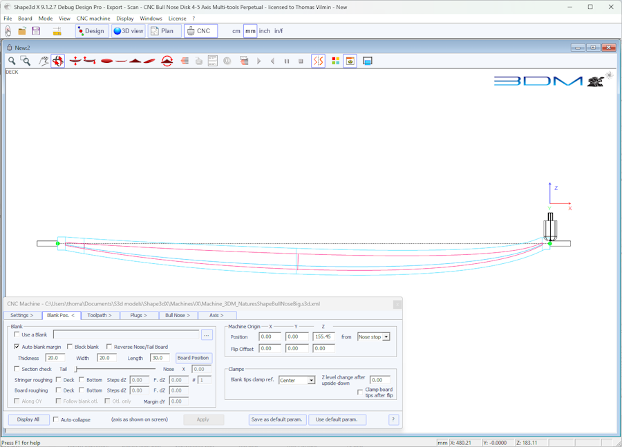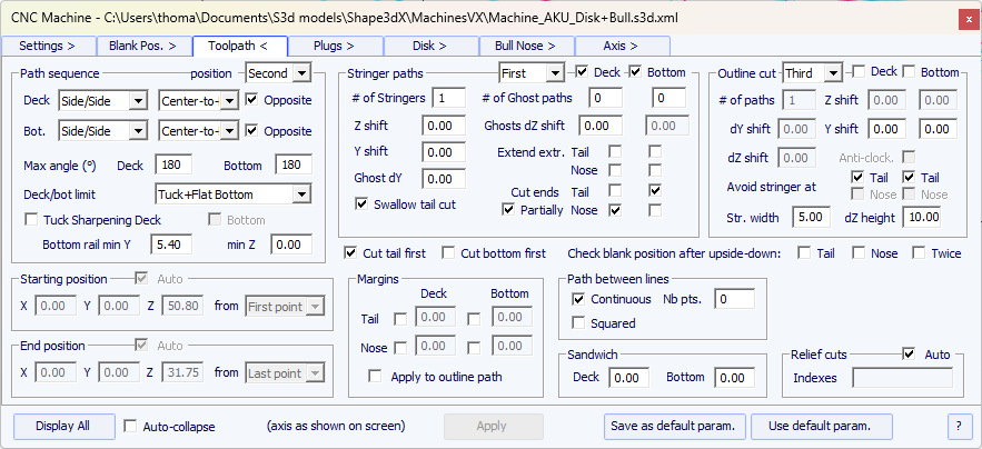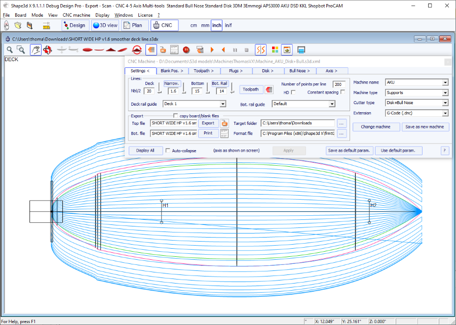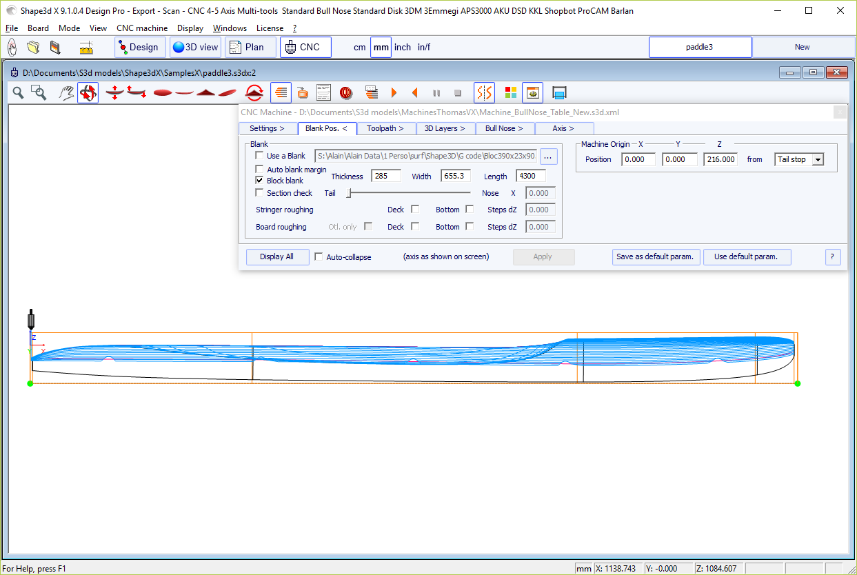 - Machine file: the machine file is the file that contains the default settings used in the CNC mode of Shape3d.