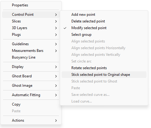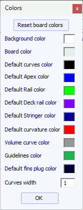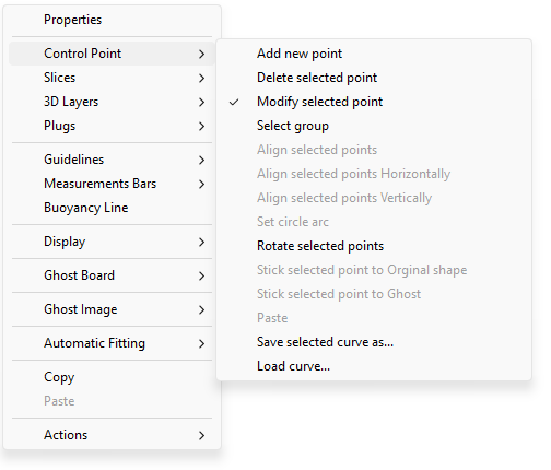 - Control point: The control points define the curves used to design the boards in Shape3d. There can be from 2 to an infinit number of control ponts per curve. The curves pass exactly over the control points. You can move the with the mouse or with the arrows of the keyboard.