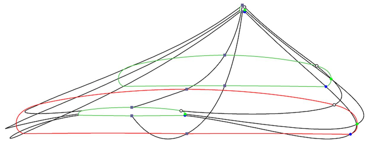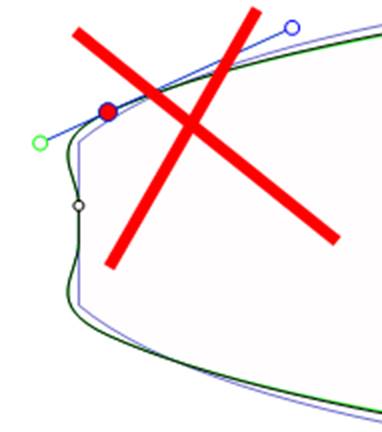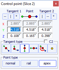 - Apex point: the widest control point of each slice can be defined as Apex. Its tangent should be vertical then. In some case it can be angular, but must not have a continuous tilted tangent.