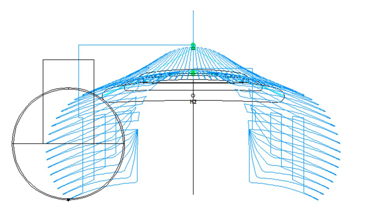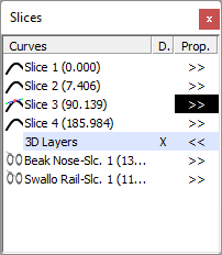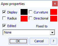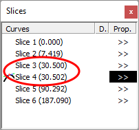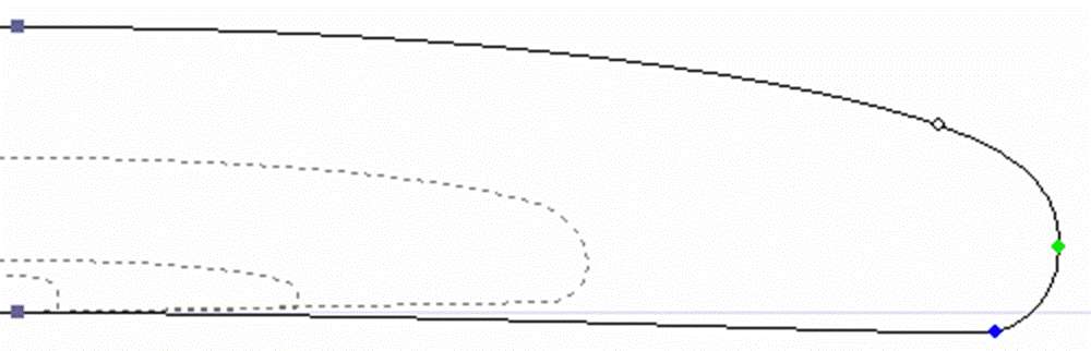 - Apex curve: the apex curve corresponds to the Apex points of the slices. If the slices are designed correctly, the Apex curve is identical to the Outline curve. It can be edited or not.
