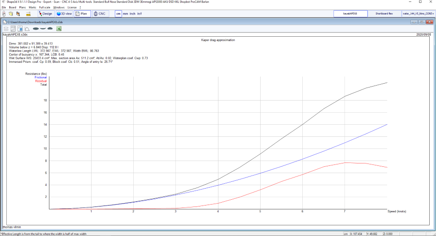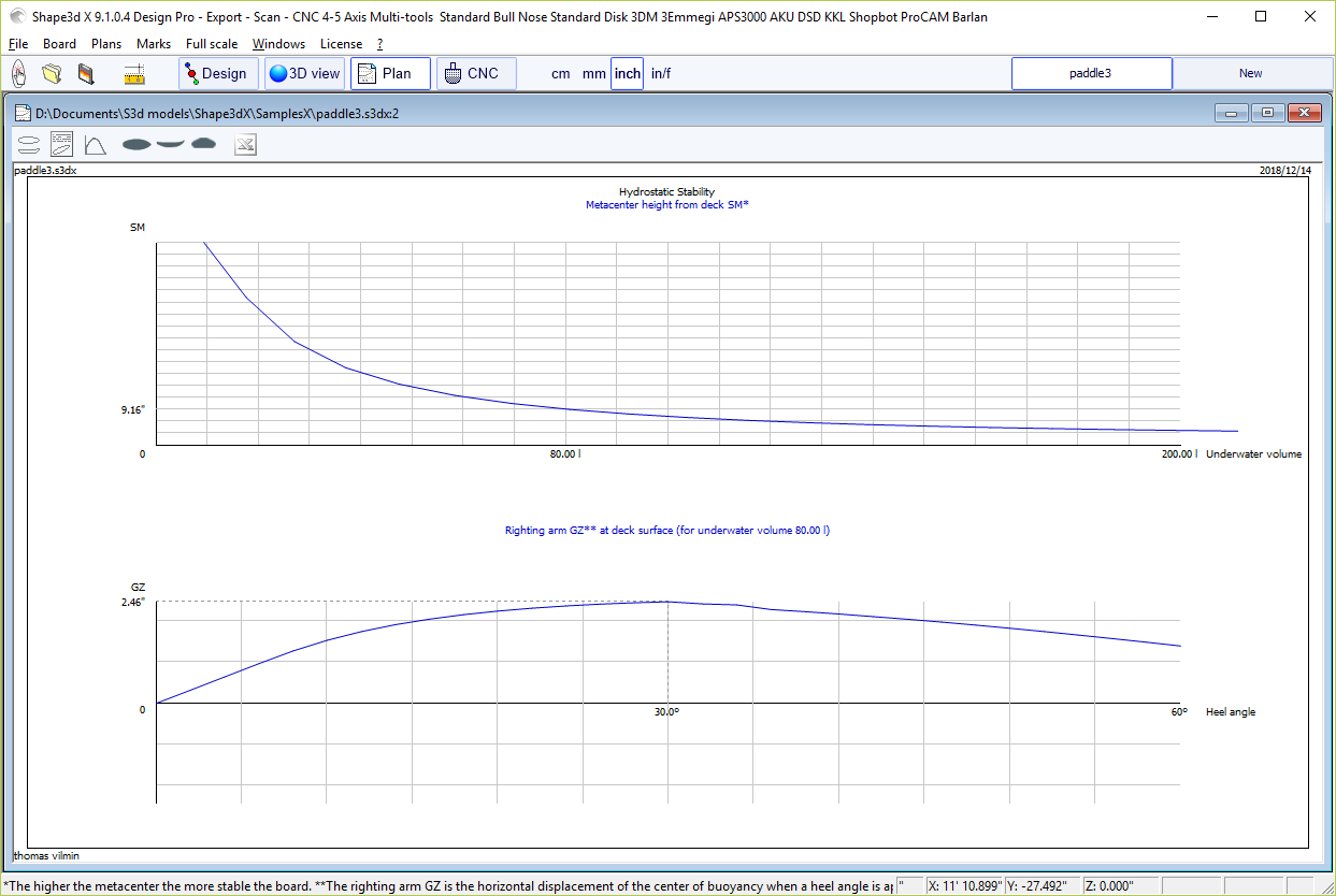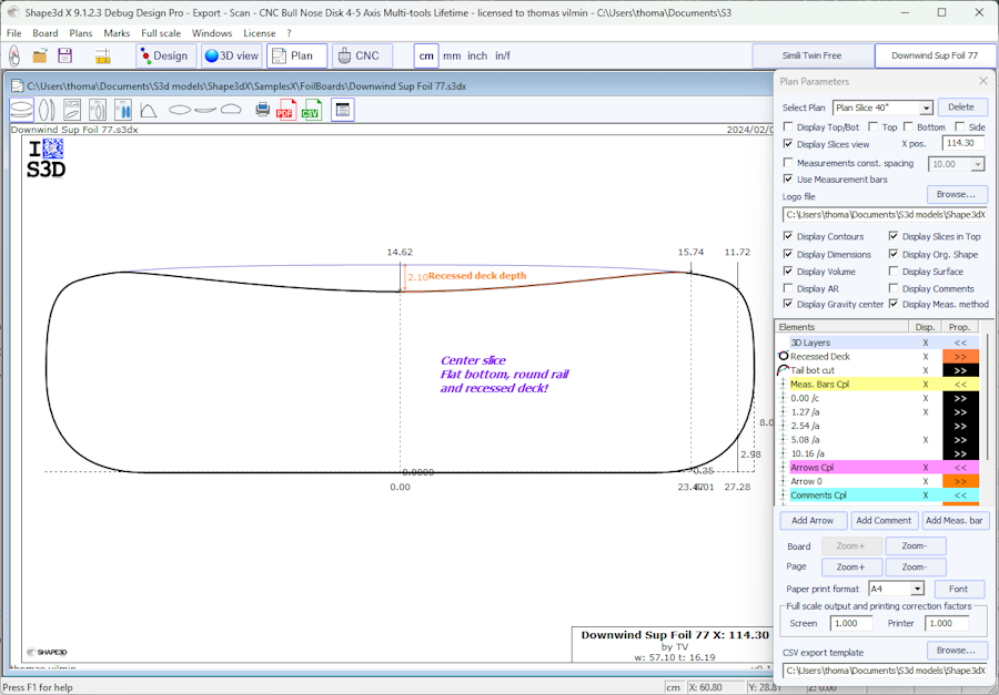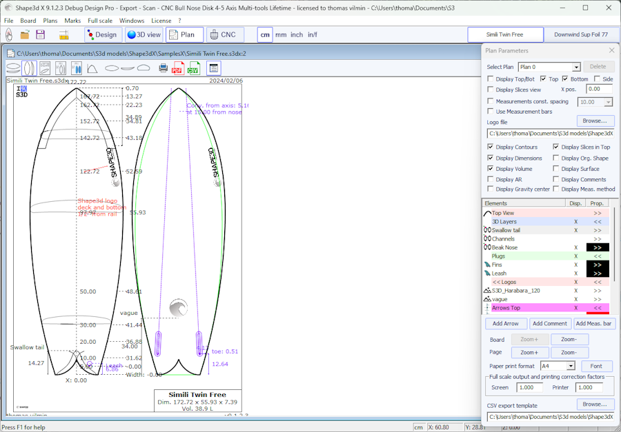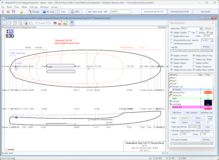 The Plan Mode displays board charts with measurements, and full scale printable view of the board.