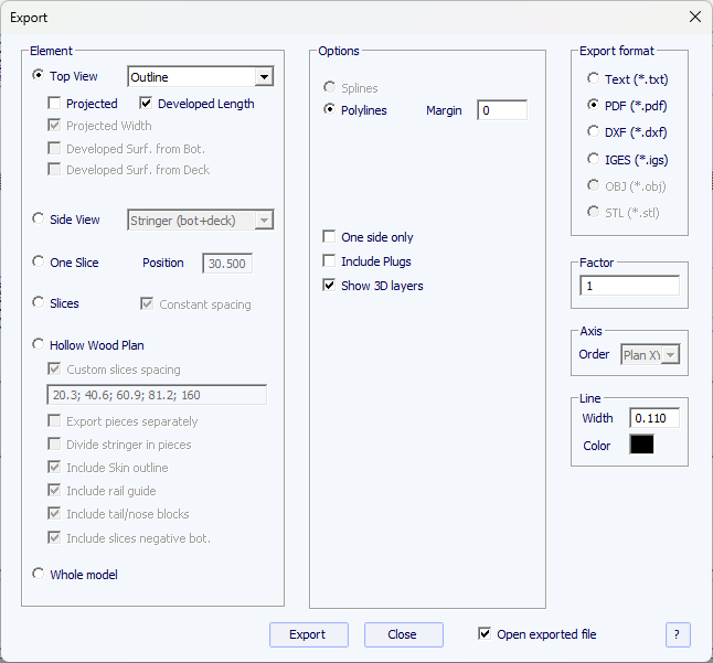 - The data of the types Outline, Bottom, Deck or Thickness will be directly imported into the corresponding curve of the board, while the data of the type Slice will be imported to the selected slice of the board that has already been opened.