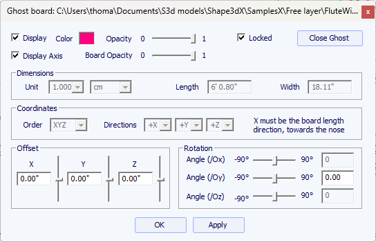 - You can switch the axis and change the direction of each axis: the X must be the length direction (towards the nose), the Y must be the width direction, and the Z must be the vertical direction (towards the deck).