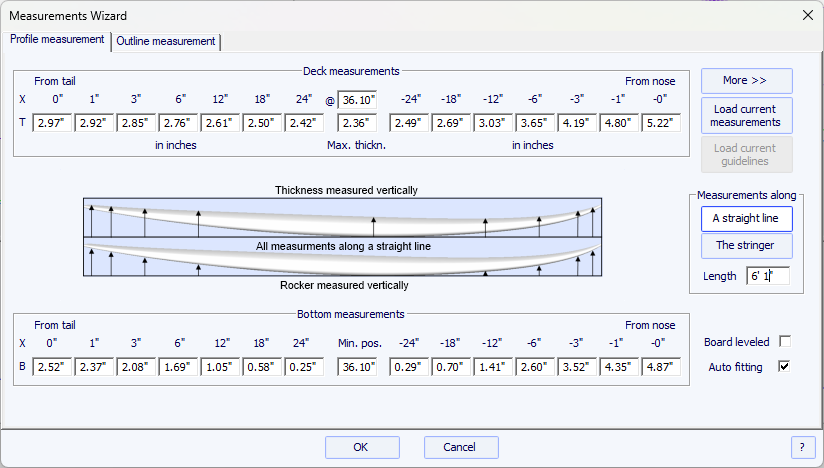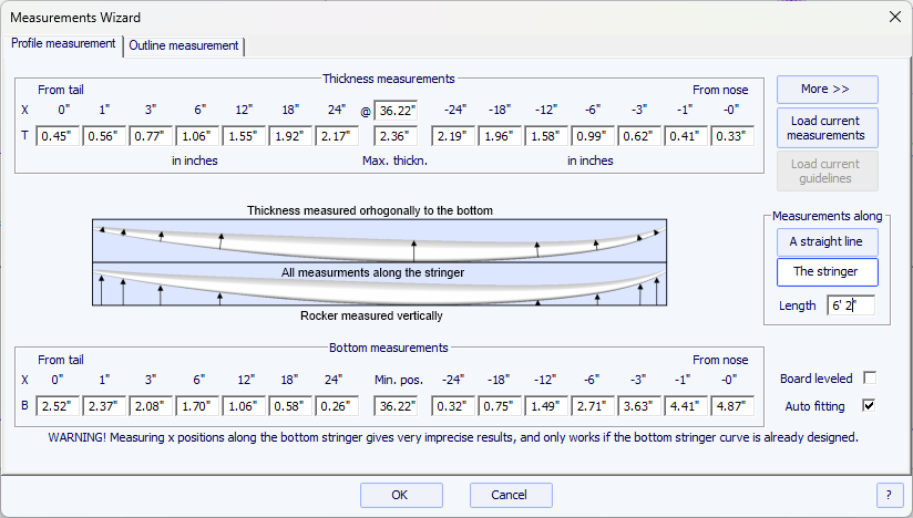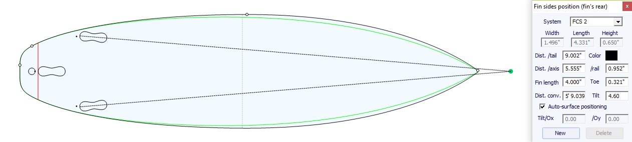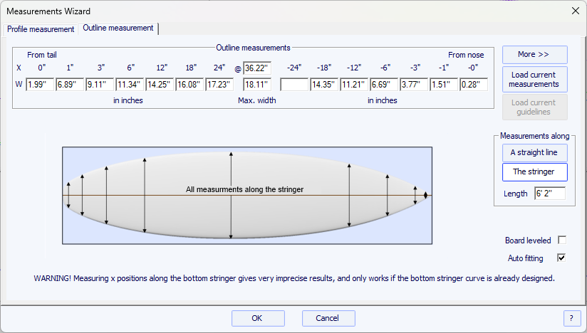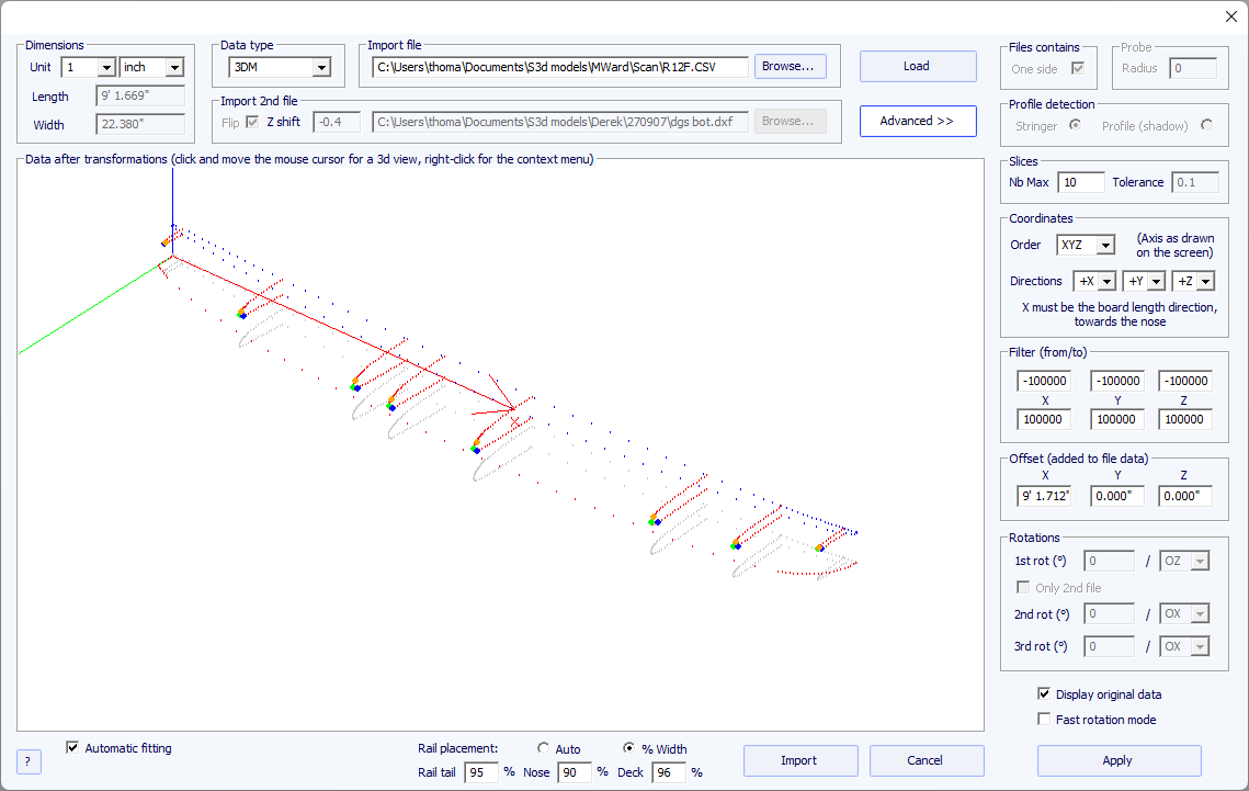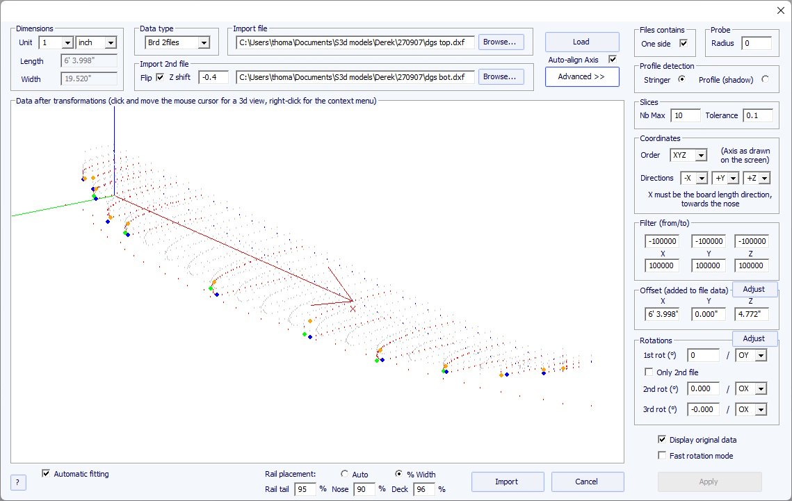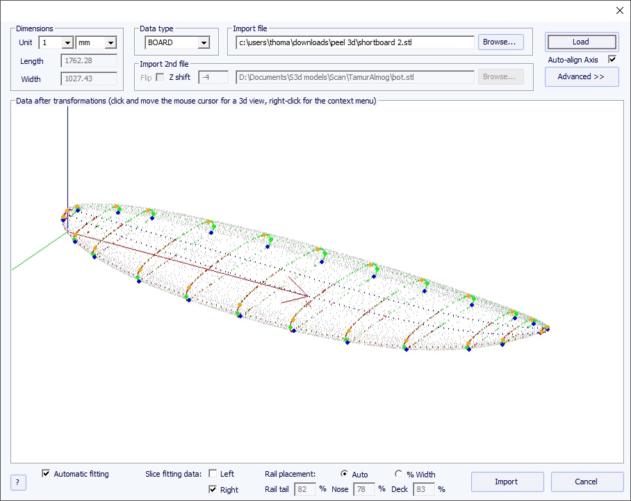 Once the rail points are well placed, you can choose to use only the left side or the right side for the automatic fitting. It gives better results then using both sides when the original board is not perfectly symetrical. Then check the "automatic fitting" box and click on OK.