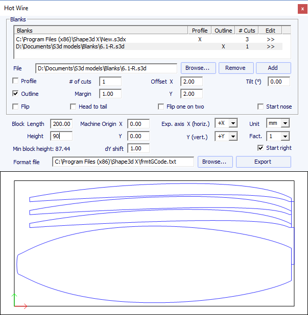 - Format File: the format File is the post processor file that contains the header and the footer of the G-Code cutting files that are be exported in the CNC mode of Shape3d.