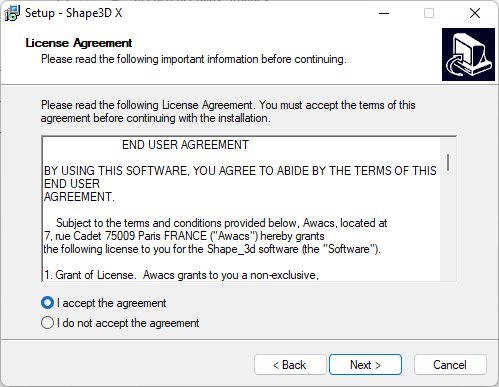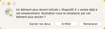 If Shape3d has been installed before a window will pop up to ask if you want to replace the previous version. Click Replace then.