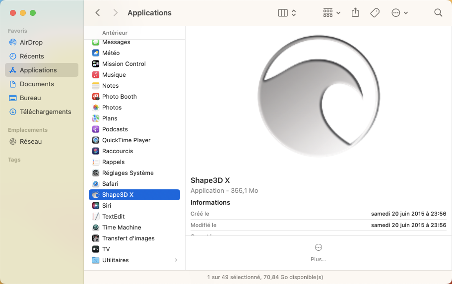 Once it's finished, go to the Applications folder and you'll see the Shape3d X appication. Double-click on it to launch Shape3d.