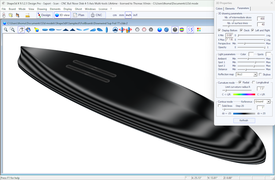 - Board: a surfboard is commonly called a "board". So we regularly call the object designed with Shape3d a board. But of course you can design many other objects such as fins, hydrofoils, paddles...