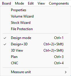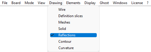 The 3D Mode allows the visualization of the boards as a 3D object, either with a solid rendering or a wired rendering.