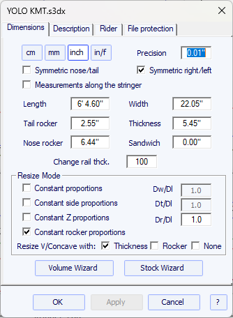 - Check the box "symmetric nose/tail" for a twin-tip board. Uncheck "symmetric right/left" for asymmetric designs.