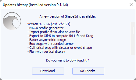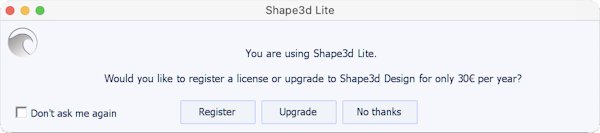 The first time you launch Shape3d Lite after installation, if Shape3d has access to the Internet, the following window will pop-up:
