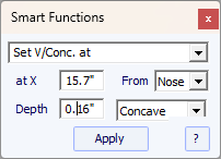 The V/Concave can be displayed in the Side view of the Design mode, in the Master Scale window, and also in the general Plan.