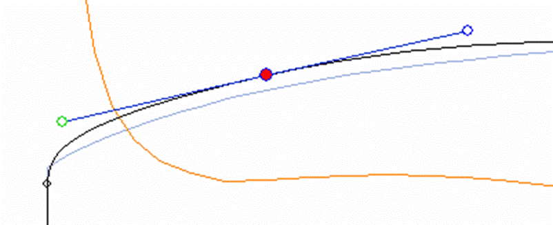 - Tangent point: The control points are all associated with 2 tangent points (except the first and last one that only have one tangent point). The tangent points give the direction of the curve around the control points. The length of the tangents also set the curvature of the curve around the control point. The tangents around a control point can be Continuous, which means that the control point and its 2 tangent points are aligned. It can be Angular if they are not aligned. It can also be forced to be horizontal, vertical, or with a fixed angle.